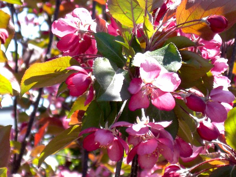 Deep red buds bloom that open up to purplish-red flowers, then fades to purplish-pink. Foliage emerges purple then fades to bronze-green. Oxblood red fruit appear later in the summer..