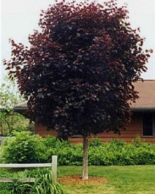 This tree has a tight narrow upright form that will max out at 25ft tall and 6-10ft wide at maturity. Small pink flowers emerge before the purple leaves.