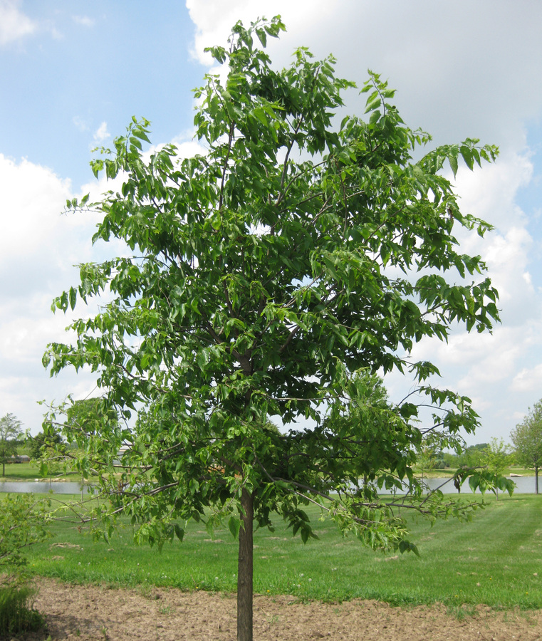 This is an excellent shade tree for urban conditions, adapts well to alkaline soils, air pollution and soil compaction. Surface roots are usually not a problem. The growth rate is medium to medium-fast. Develops a pyramidal canopy shape. Foliage is dense with 2-4 inch leaves, bright green. The fall color is yellow.