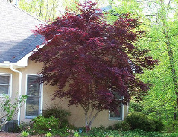 Classic-shaped, maple leaves are deep burgundy to purple, oval shape and slower growing in the species.