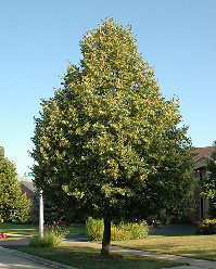 A compact pyramidal tree is excellent for privacy and small lots. It has attractive dark green foliage, turning yellow in the fall. Tolerates urban pollution and wind.