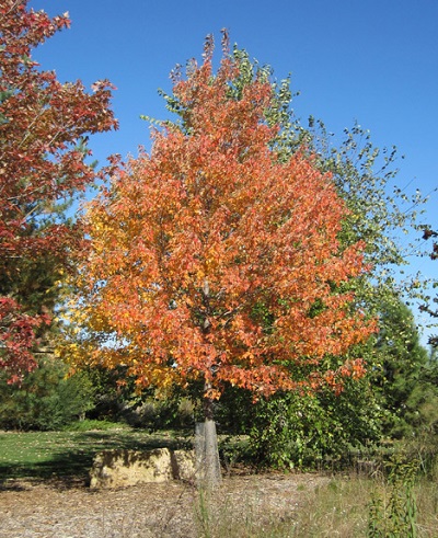 Known for its brilliant fall colour (ranging from yellowish-orange to bright red). It does not do well in clay, or close to roads, where salt spray from traffic occurs in winter. Oddly enough, the leaves of this tree are very toxic to horses.